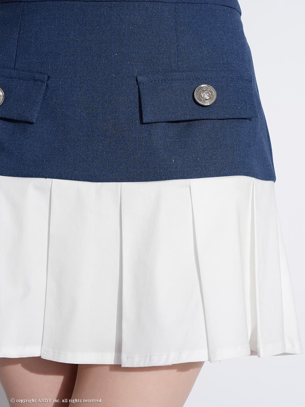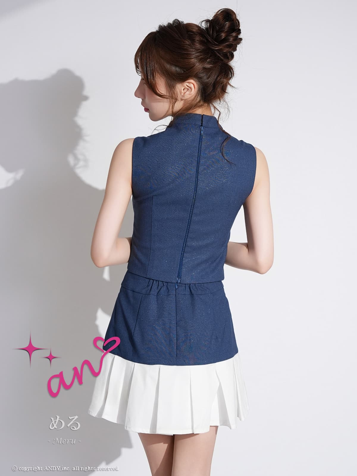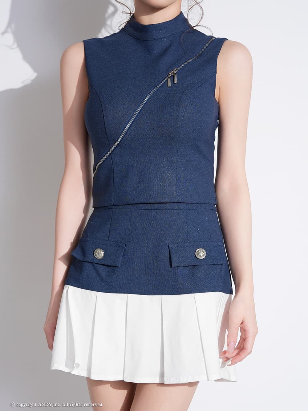 XSサイズあり【an/アン】ハイネック/ バストジップ/ ノースリーブ/ ラメ/ 切替/ プリーツ/ フレア/ セットアップ/ ミニドレス/ キャバドレス[OF05] [AOC4080-IndigoxW-2604]