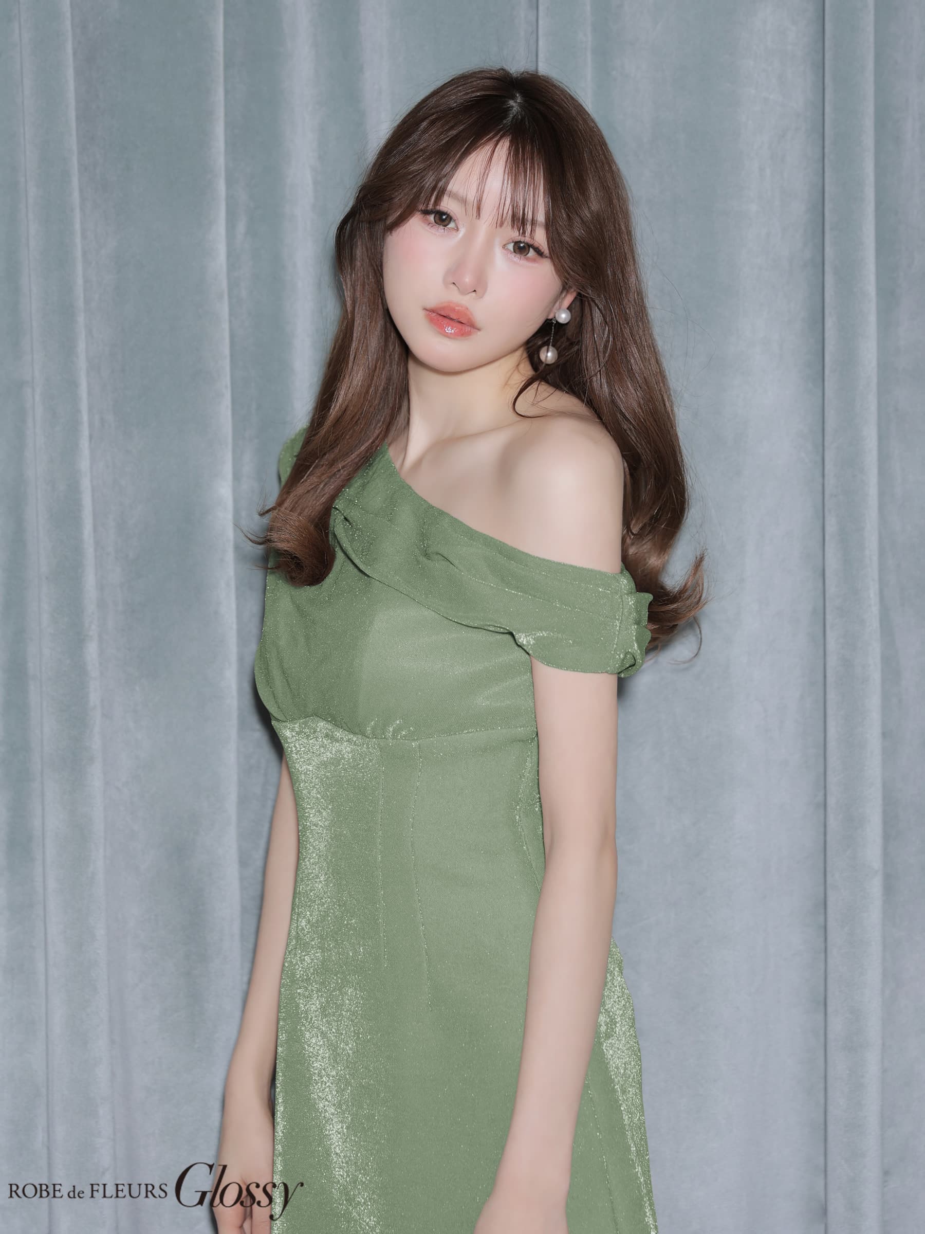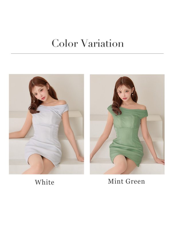 XSサイズあり【Glossy/グロッシー】ラメニット/ ドレープ/ ワンショルダー/ ストレッチ/ ハイウエスト/ キャバドレス[OF08] [GL4182-MI-S260422]