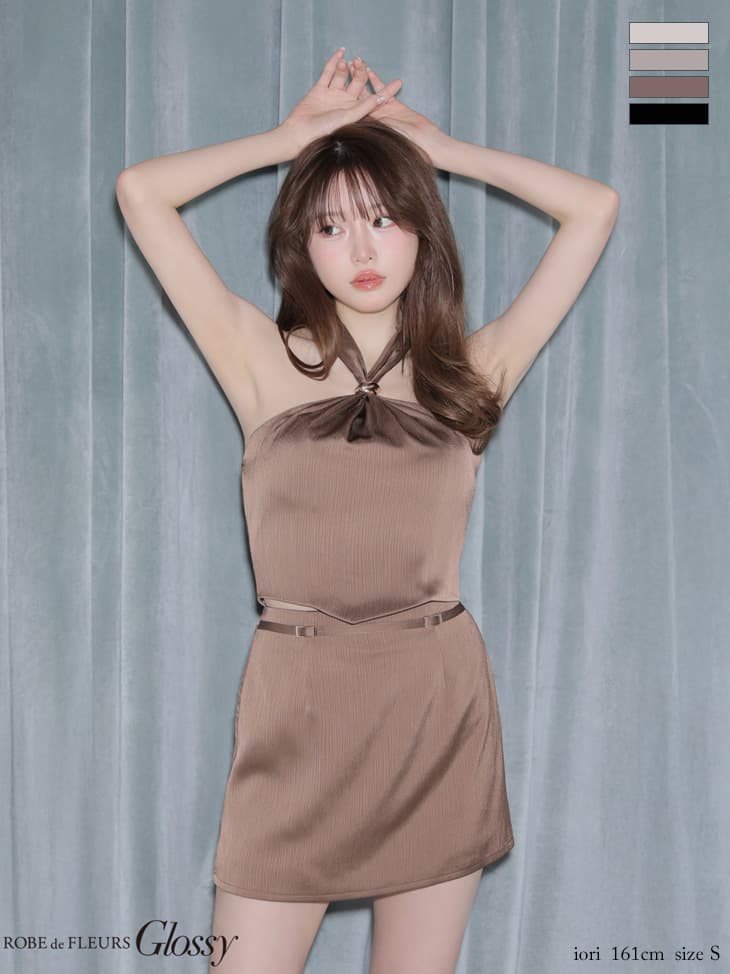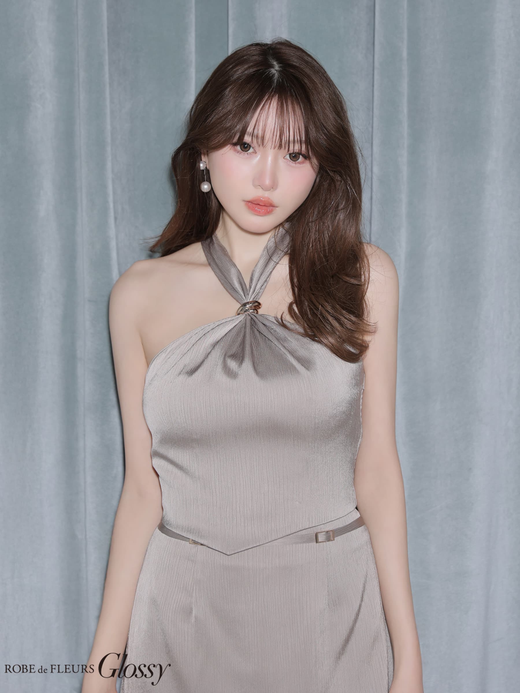 XSサイズあり【Glossy/グロッシー】ラメ/ ジャガード/ サテン/ ホルター/ タイト/ ミニドレス/ キャバドレス[OF08] [GL4359-GY-2604]