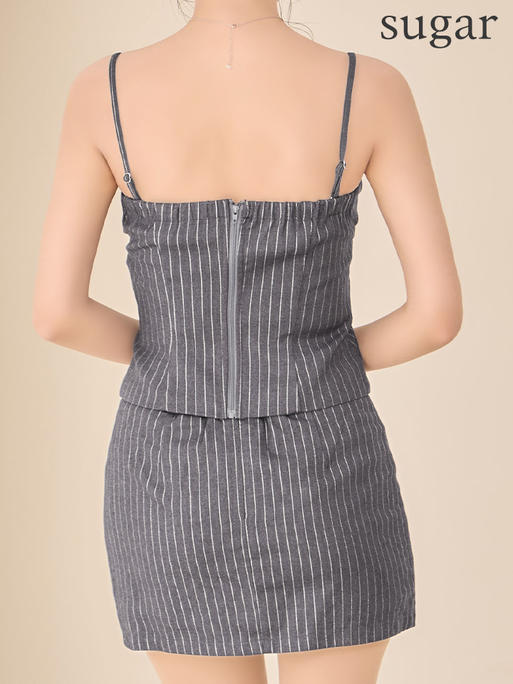 襟×ストライプがスタイリッシュなセットアップドレス♡