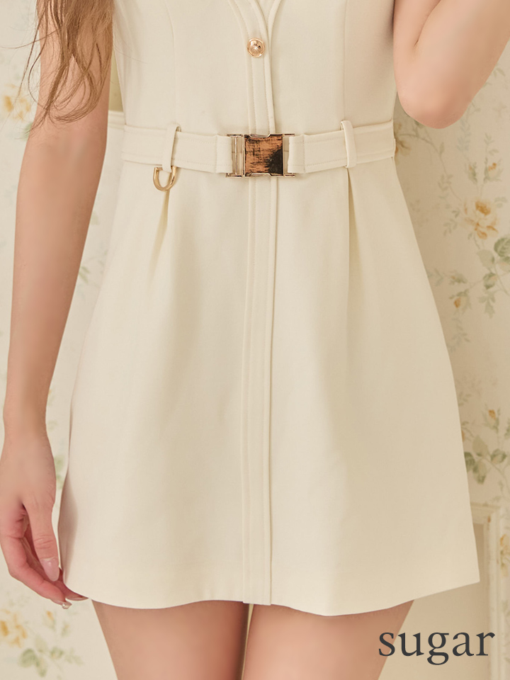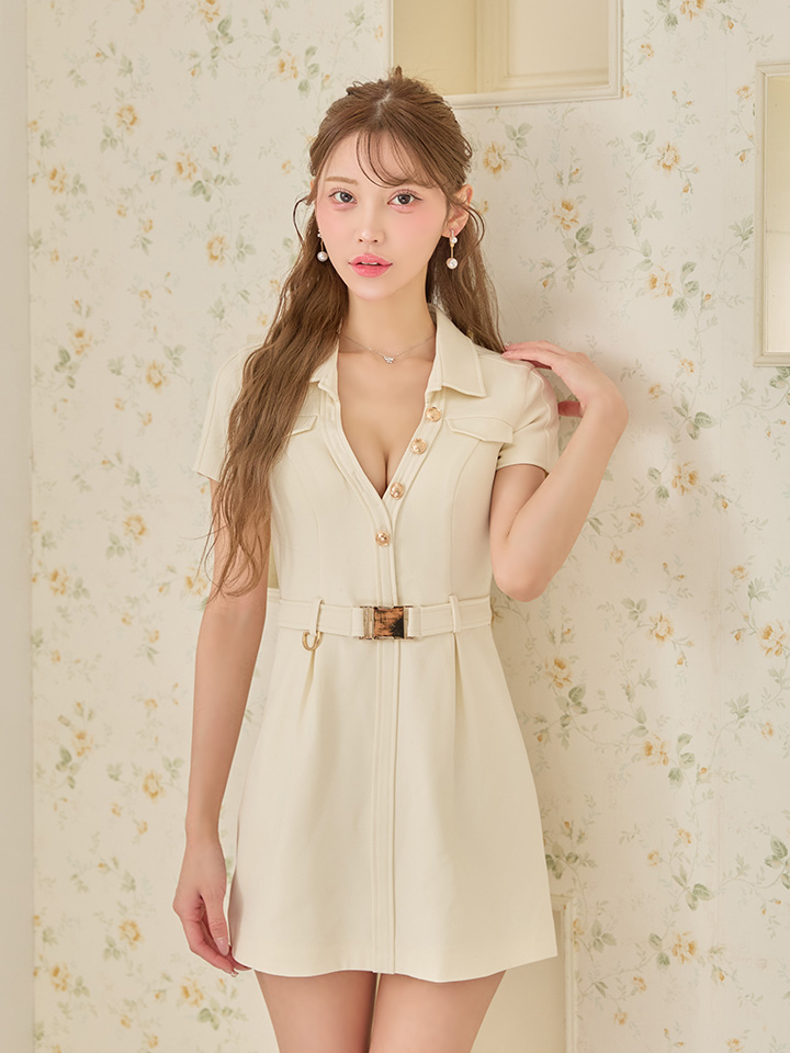 XS-Lサイズあり【Glossy/グロッシー】Vネック/ バストカット/ ベルト付き/ タイト/ ミニドレス/ キャバドレス[OF08] [GL3960-IV-S260423]
