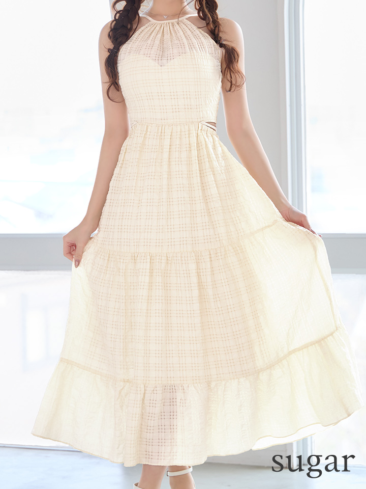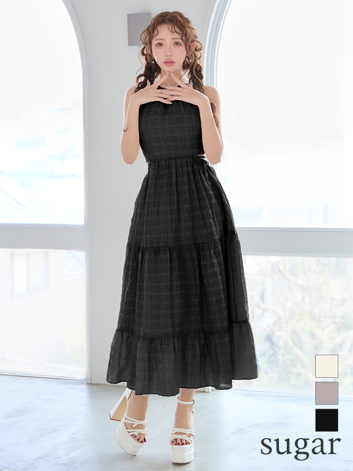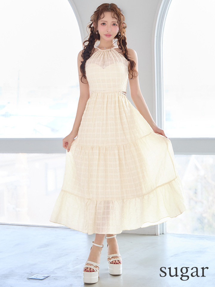 XSサイズあり【DEA./ディア】ホルター/ チェック/ バックカット/ シフォン/ ワンピース/ ミディアムドレス/ キャバドレス[OF08] [DE4357-IV-S260424]