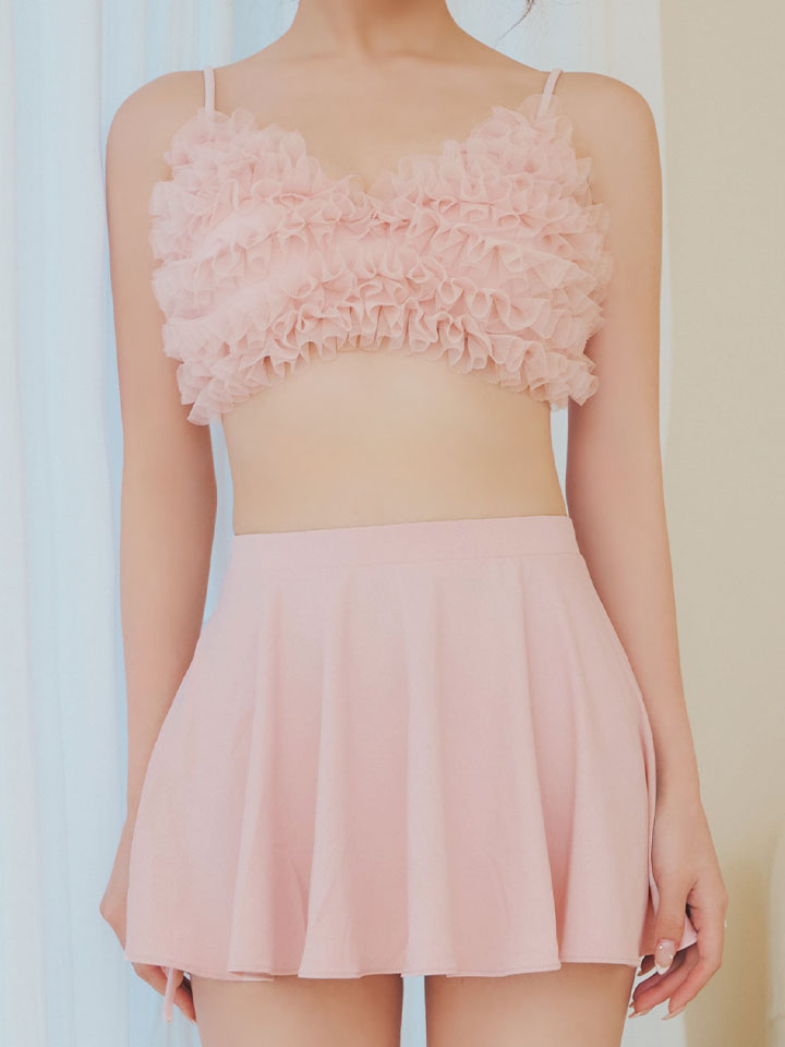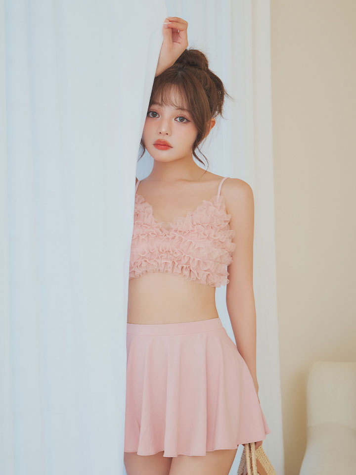 今季トレンドのチュール素材をたっぷり使用したビキニタイプの水着。