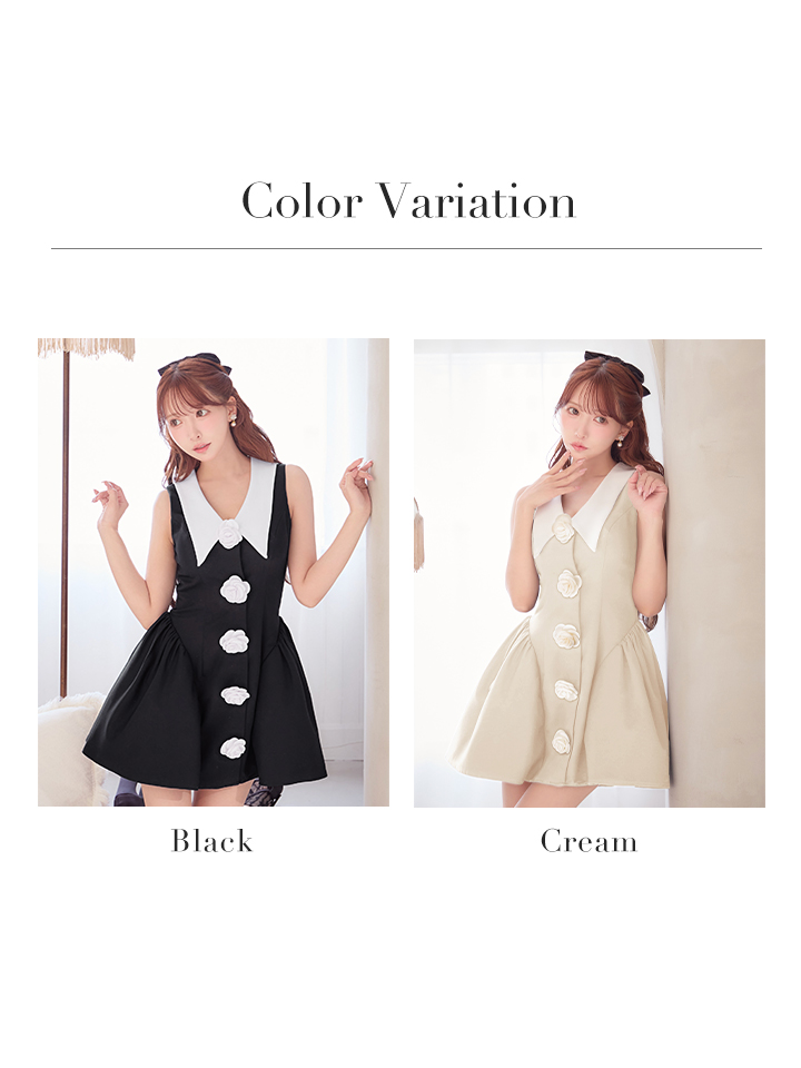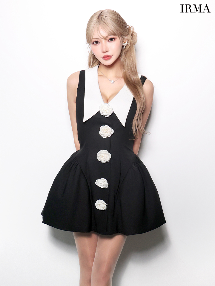 XSサイズあり【IRMA/イルマ】襟付き/ バイカラー/ ローズ/ ノースリーブ/ フレア/ ミニドレス/ キャバドレス[OF2A] [61071-IR-CM-S260427]