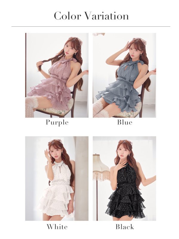 贅沢に重ねたフリルティアードが華やかさを添え、視線を惹きつける一着