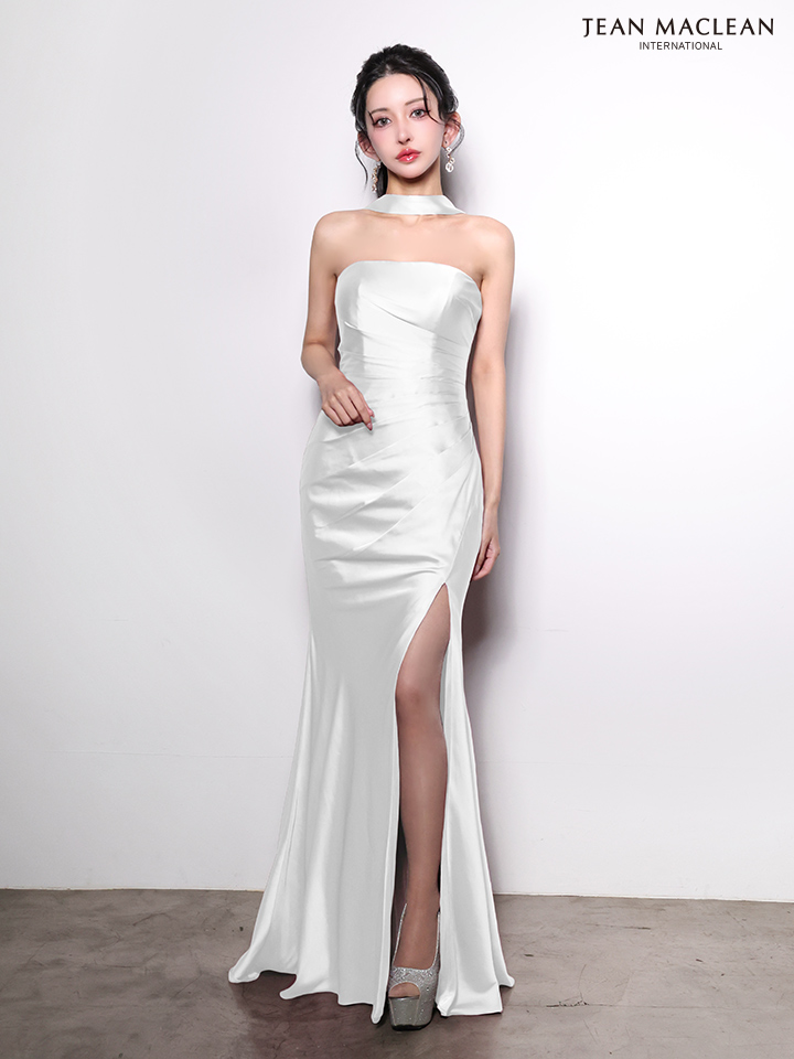 【JEAN MACLEAN/ジャンマクレーン】ストール付き/ タック/ サテン/ ベア/ 2WAY/ スリット/ タイト/ ロングドレス/ キャバドレスlong[OF2A] [61118-JM-W-2604]