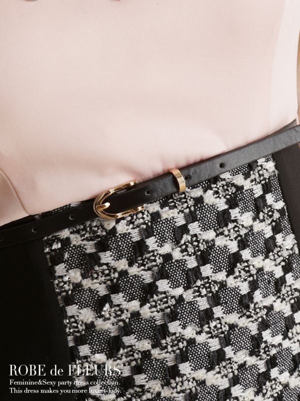 【ROBE de FLEURS/ローブドフルール】ツイード素材と胸元キラキラビジューの半袖ミニキャバドレス☆ [fm385M2]