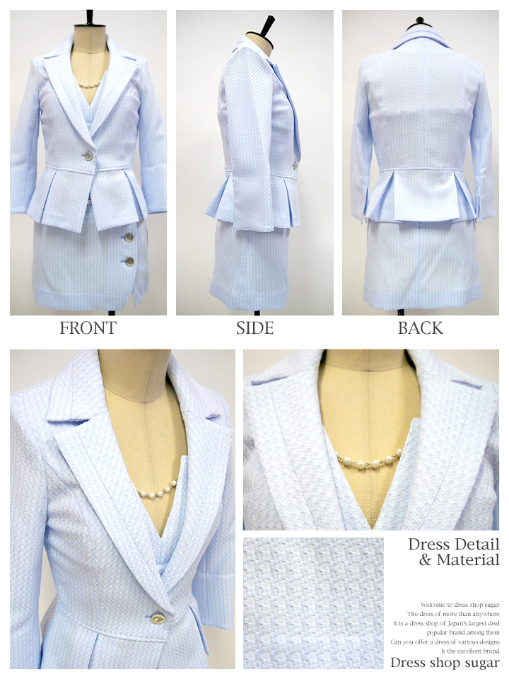 【Lucia/ルシア】[スーツ/日本製]チェック柄が可愛い凹凸のあるデコラ生地♪summerスーツ3点セット☆サックス*Sサイズ [70302LZ-SA-1506]