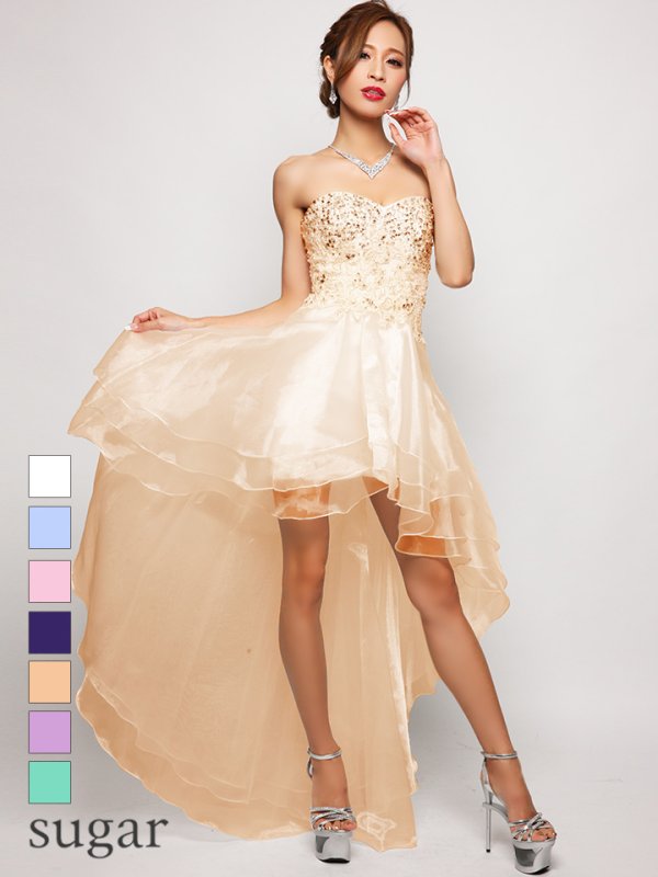 新色追加!!XSサイズあり【Lip line/リップライン】ビジュー/ハイ&ロー/ベア/チュール/キャバドレス[OF05] [B0280-CGL]