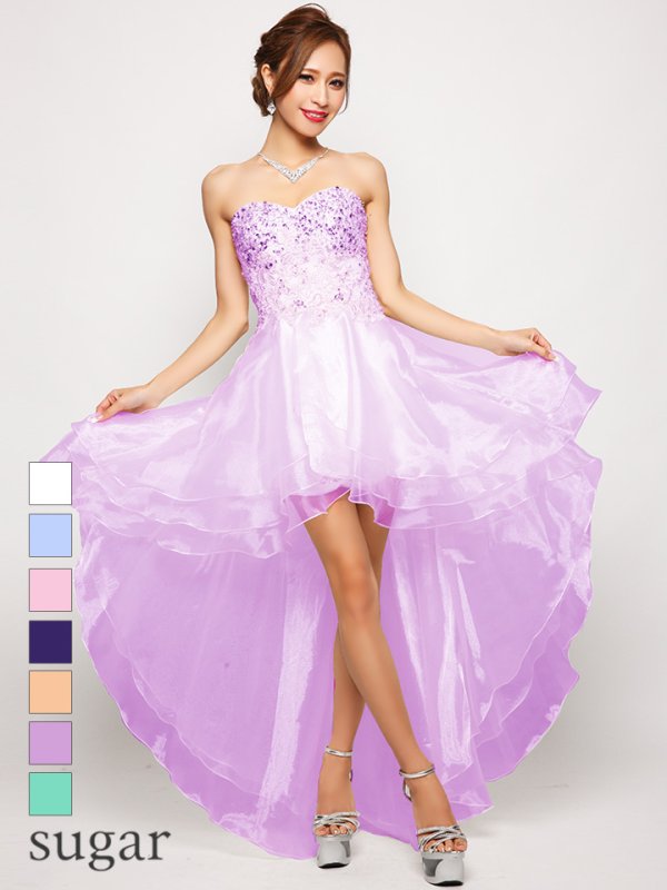新色追加!!XSサイズあり【Lip line/リップライン】ビジュー/ハイ&ロー/ベア/チュール/キャバドレス[OF05] [B0280-LV]