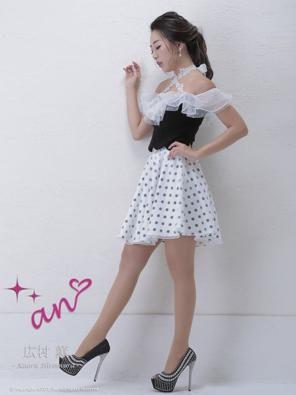 【an】オフショル/ドット/クロスデザイン/セットアップ/キャバドレス[OF05] [AOC2722BxW]