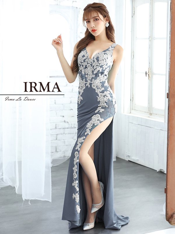 Lサイズあり【IRMA/イルマ】フラワー刺繍/ レース/ スリット/ ワンカラー/ ロングドレス/ キャバドレス long[HC03] [91761-LostBL-2008]