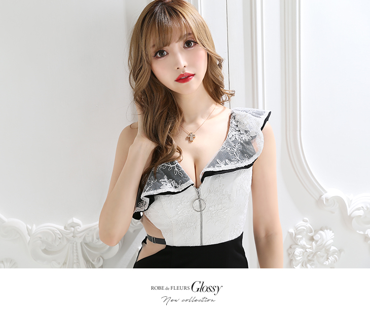 XSサイズあり【Glossy/グロッシー】チョーカー付き/ ダブルボタン/ セットアップ/ キャミ/ ミニドレス/ キャバドレス[OF08] [GL3917-W-2504]