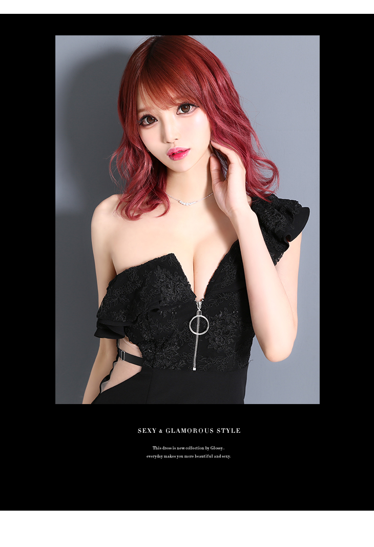 ジッパーとベルトデザインが目を引くセクシーなタイトミニドレス♡