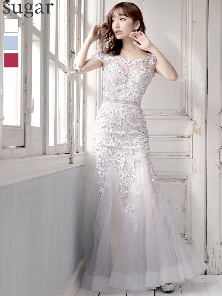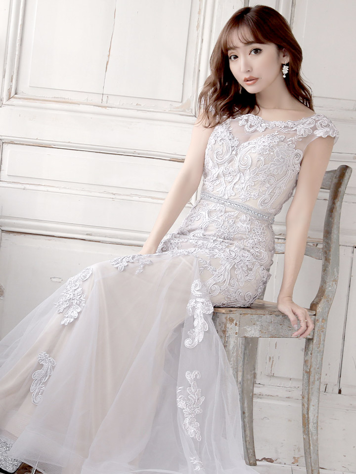 【JEAN MACLEAN/ジャンマクレーン】チュール/ 切り替え/ レース刺繍/ マーメイド/ スピンドル/ ロング/ロングドレス /キャバドレス long[OF2A] [91559-Fu-S2101]