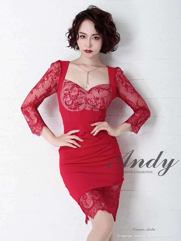 【ANDY/アンディ】レース/ 七分袖/ バックリボン/ タイト/ ミニドレス/ キャバドレス[FB03] [OK2266-NVBE-2101]