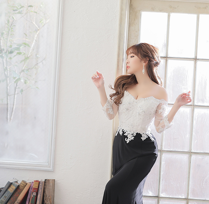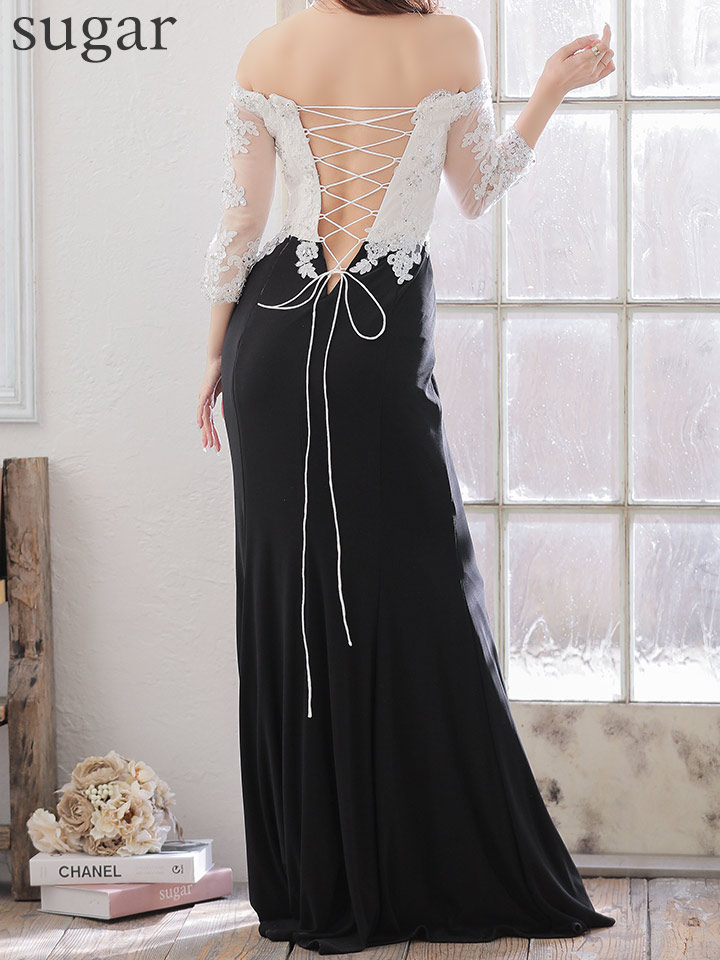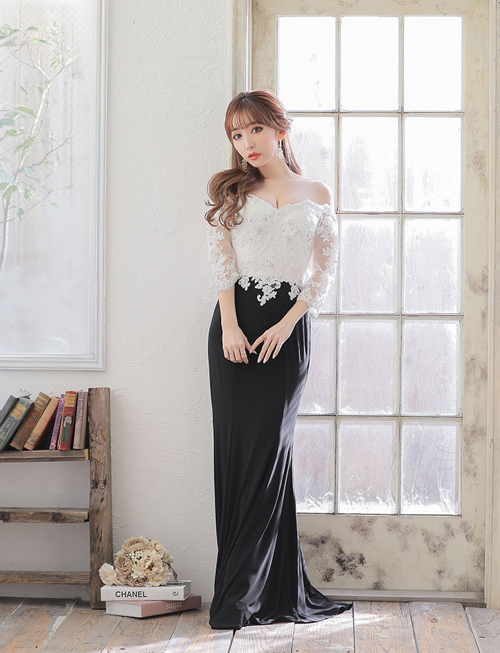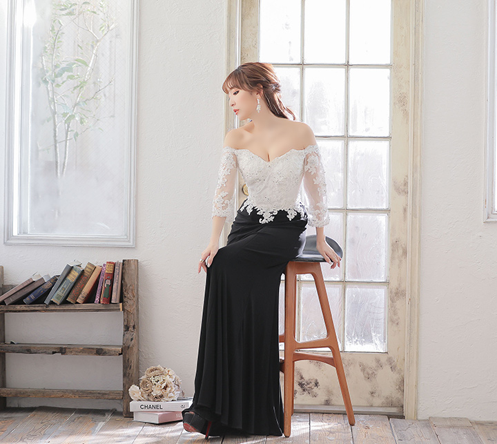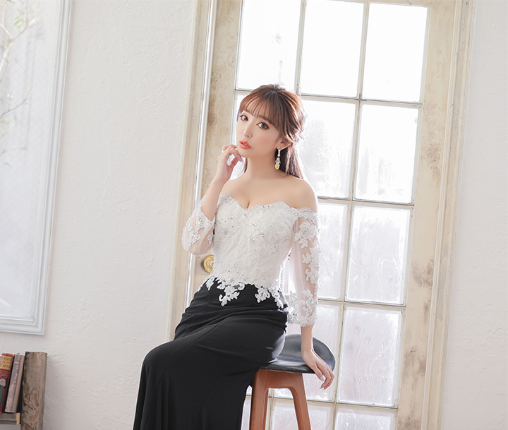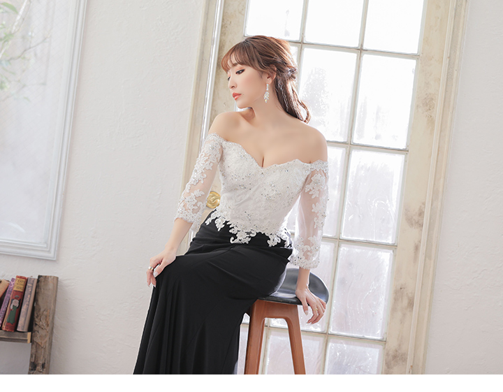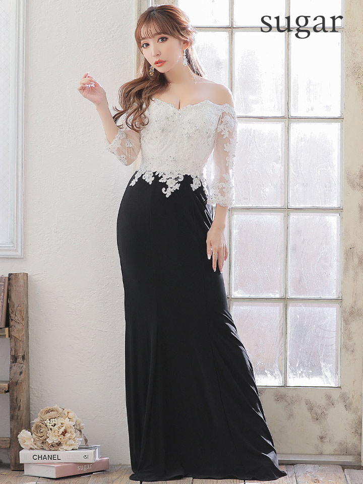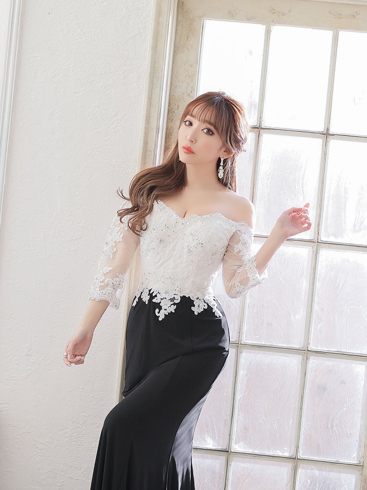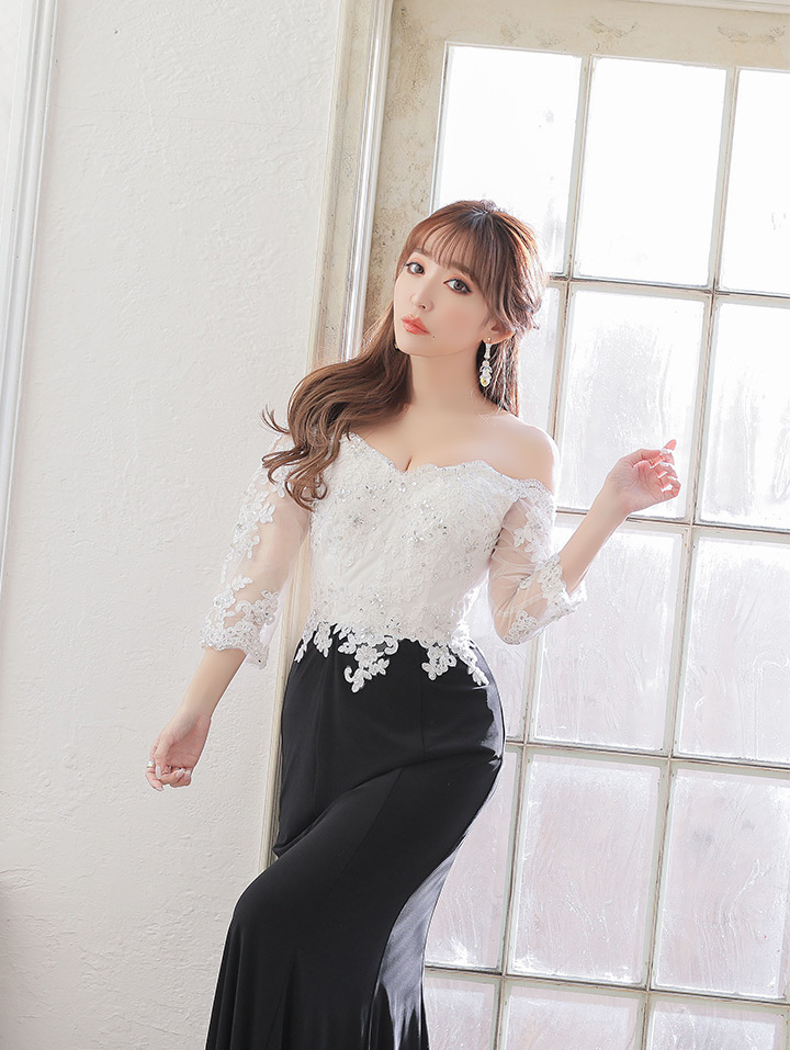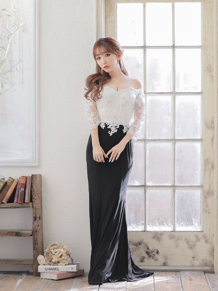 Lサイズあり!!【JEAN MACLEAN/ジャンマクレーン】オフショル /七分袖 /スピンドル /ロングドレス /ロングドレス /キャバドレス long[OF2A] [91750-WxB-S2103]