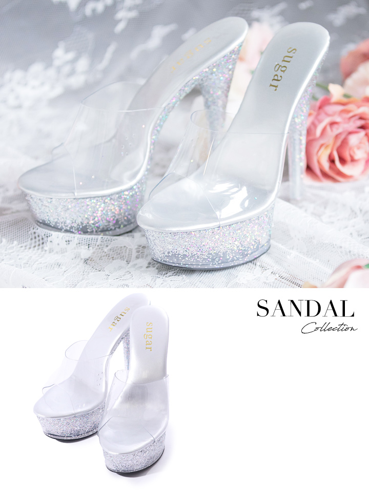 ソール部分にグリッターをふんだんにあしらった主役級サンダル。