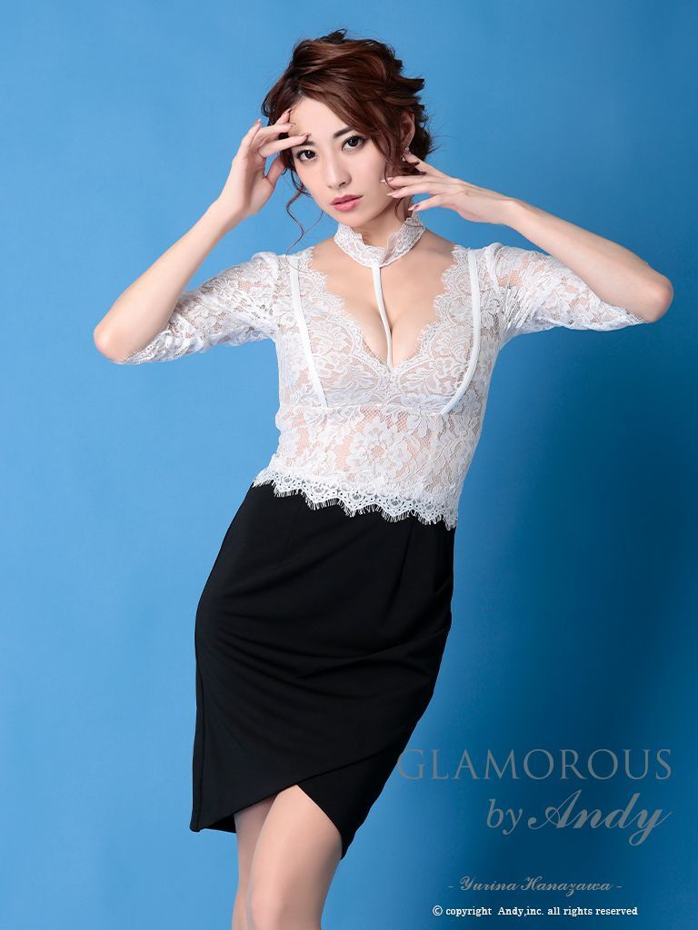 【Andy GLAMOROUS/アンディグラマラス】チョーカーデザイン/ バイカラー/ レース/ 切り替え/ 袖あり/ タイト/ ミニドレス/ キャバドレス[FB03] [GMS-V658-WxB-2107]