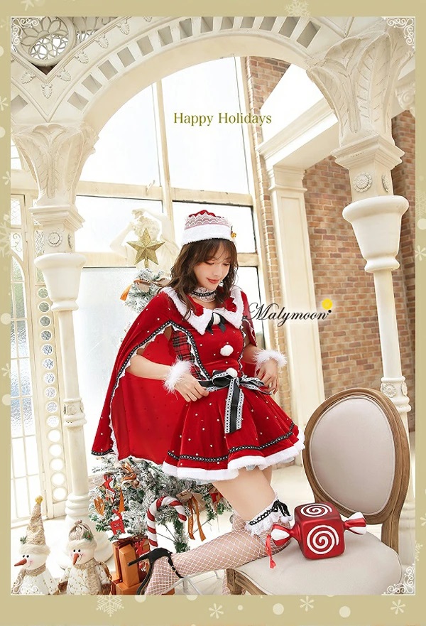 マントとワンピースが一体になった可愛いサンタコスチューム☆