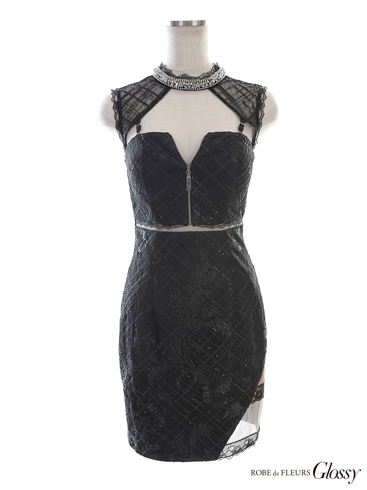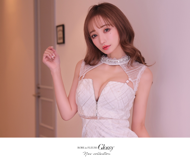 【ROBE de FLEURS Glossy/ローブ・ド・フルール グロッシー】フロントジッパー×バックリボンが目を引くタイトミニドレス♡