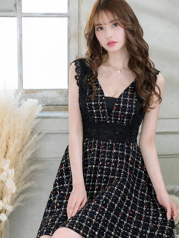 【Donia Quinn / ドニアクイーン】 レース/ ツイード/ Aライン/ ワンピース/ ミニドレス/ キャバドレス[OF05] [Q32907Y-B-S2202]