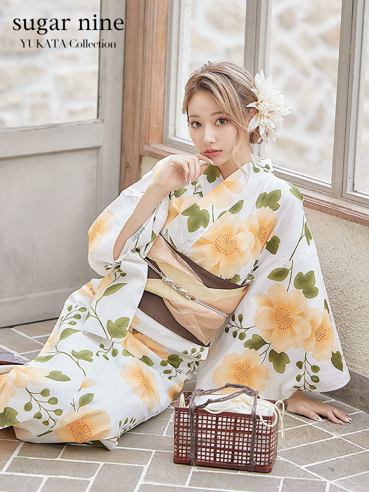 【即日発送】【浴衣セール】【浴衣】白地に黄色い花浴衣セット[YMT] [Y-329-ok-Y-F-22PY]