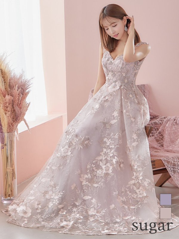 フラワー刺繍がラグジュアリーなワンランク上の仕上がりのロングドレス