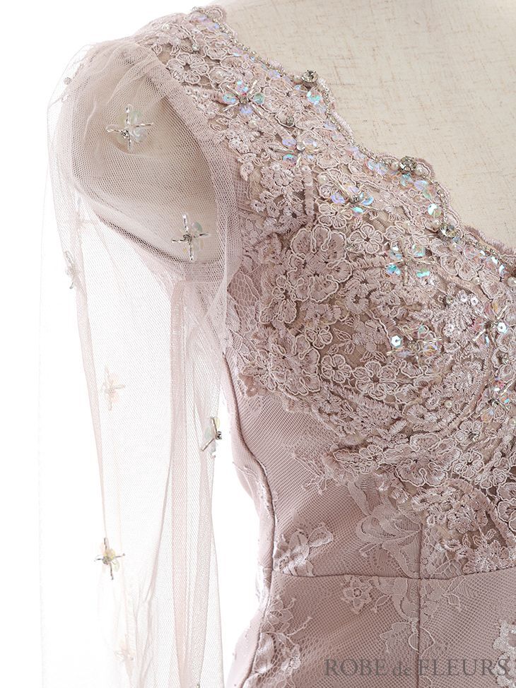 ビジュー付きチュールスリーブで、上品かつフェミニンな印象♪