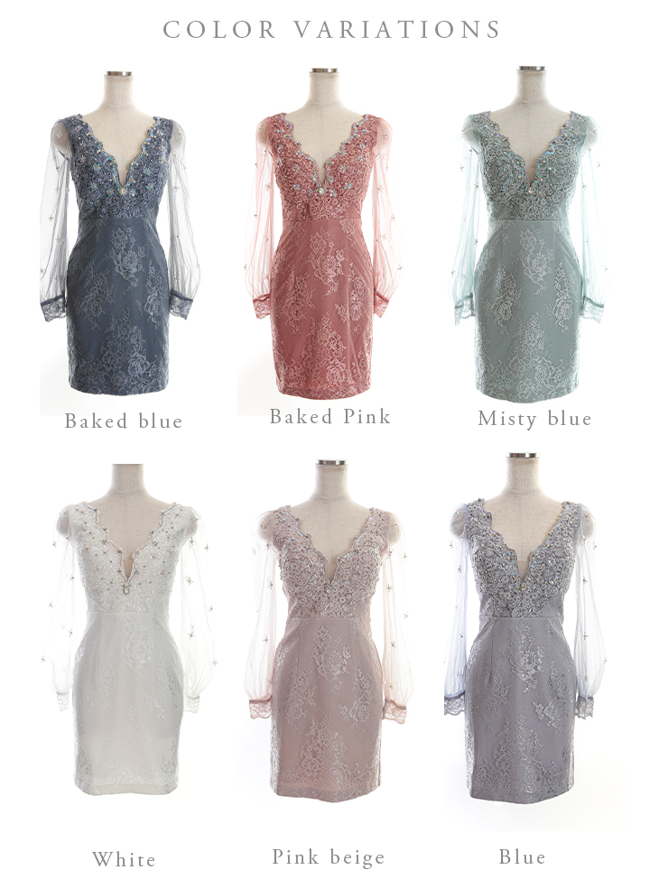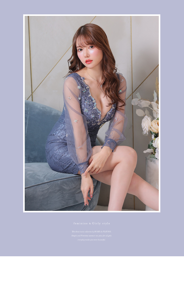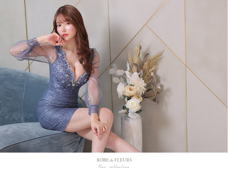 XSサイズあり【ROBE de FLEURS/ローブドフルール】長袖/ 袖あり/ チュールスリーブ/ スカラップカット/ ミニドレス/ キャバドレス[OF08] [fm2575-W-2205]