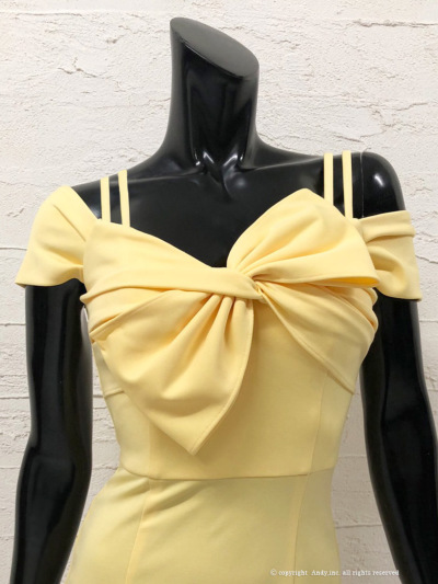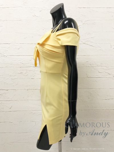【Andy GLAMOROUS/アンディグラマラス】オフショル/ ワンカラー/ スリット/ リボン/ タイト/ ミニドレス/ キャバドレス[FB03] [GMS-V736-YE-S2206]
