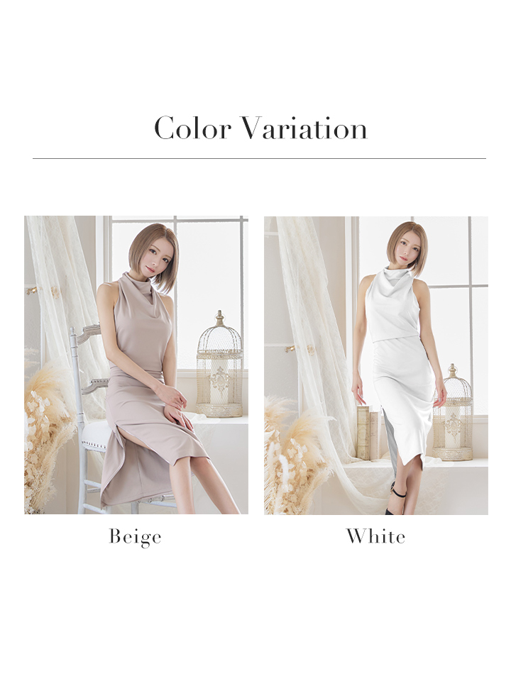 XSサイズあり【Veautt/ヴュート】ハイネック/ サイドスリット/ ファスナー/ タイト/ひざ丈/ミディアム/キャバドレス[OF05] [VT22101-BE-S2206]