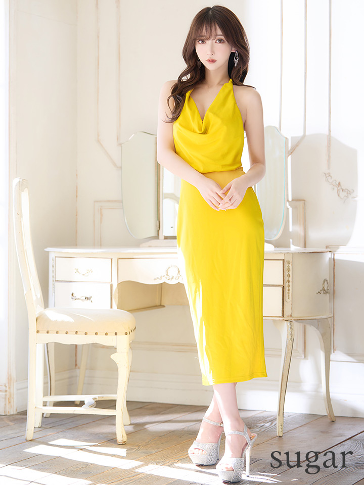 XSサイズあり【Veautt/ヴュート】ドレープ/ バックオープン/ ワンカラー/ タイト/ ひざ丈/ ミディアム/ キャバドレス [VT01222-YE-2207]