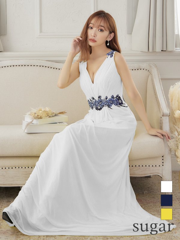 【Lip line/リップライン】フラワー刺繍/ チュール/ ギャザー/ スピンドル/ ロングドレス/ キャバドレス long[HC03] [H-4411-W-S2207]