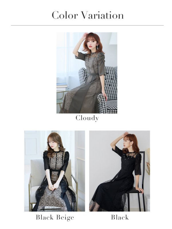 レースにさりげない透け感が上品なワンピースドレス