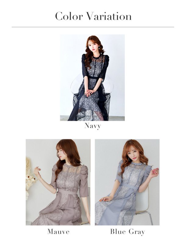Lサイズあり【VANESSA HEART / ヴァネッサハート】【OF05】 パフスリーブ/ 切り替え/ レース/ 袖あり/ 七分袖/ ミモレ丈/ ワンピース/ キャバドレス [H9818HL-B-S2209]
