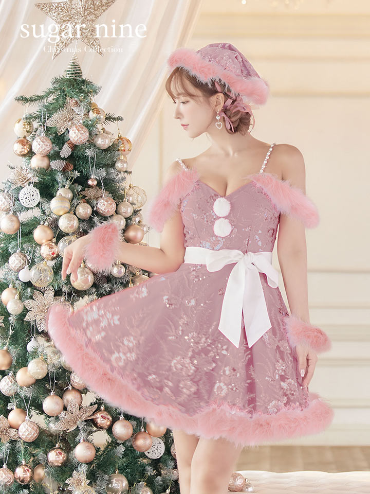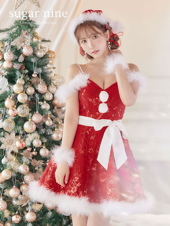 【サンタSALE!!】ファーショルダー/ スパンコール刺繍フレアサンタ【sugar nine サンタコス 5点セット】【S-XLサイズ/2カラー】[OF04] [SS056YN-22MY-1]