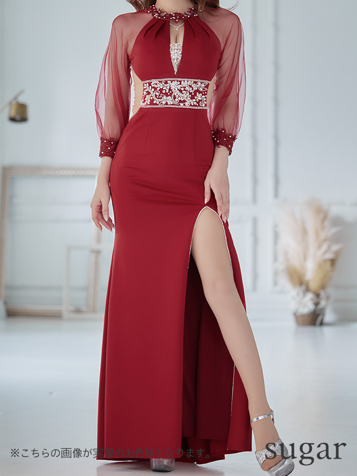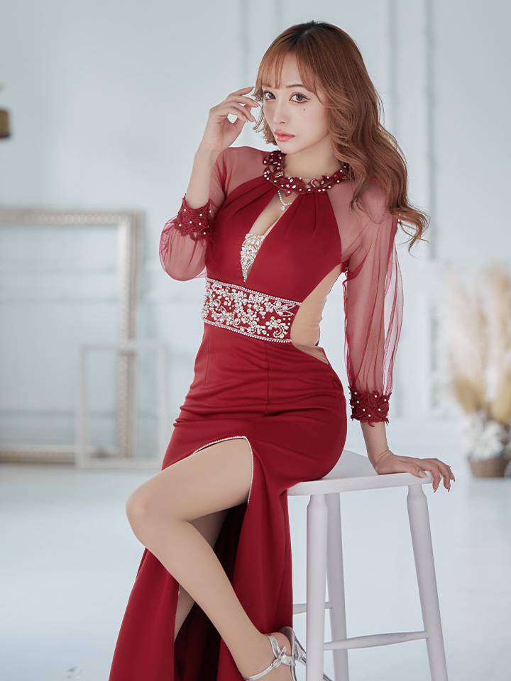 サイドカットでさりげないSEXYさも忘れない、肌魅せが苦手な方でも着やすいドレスになっています。