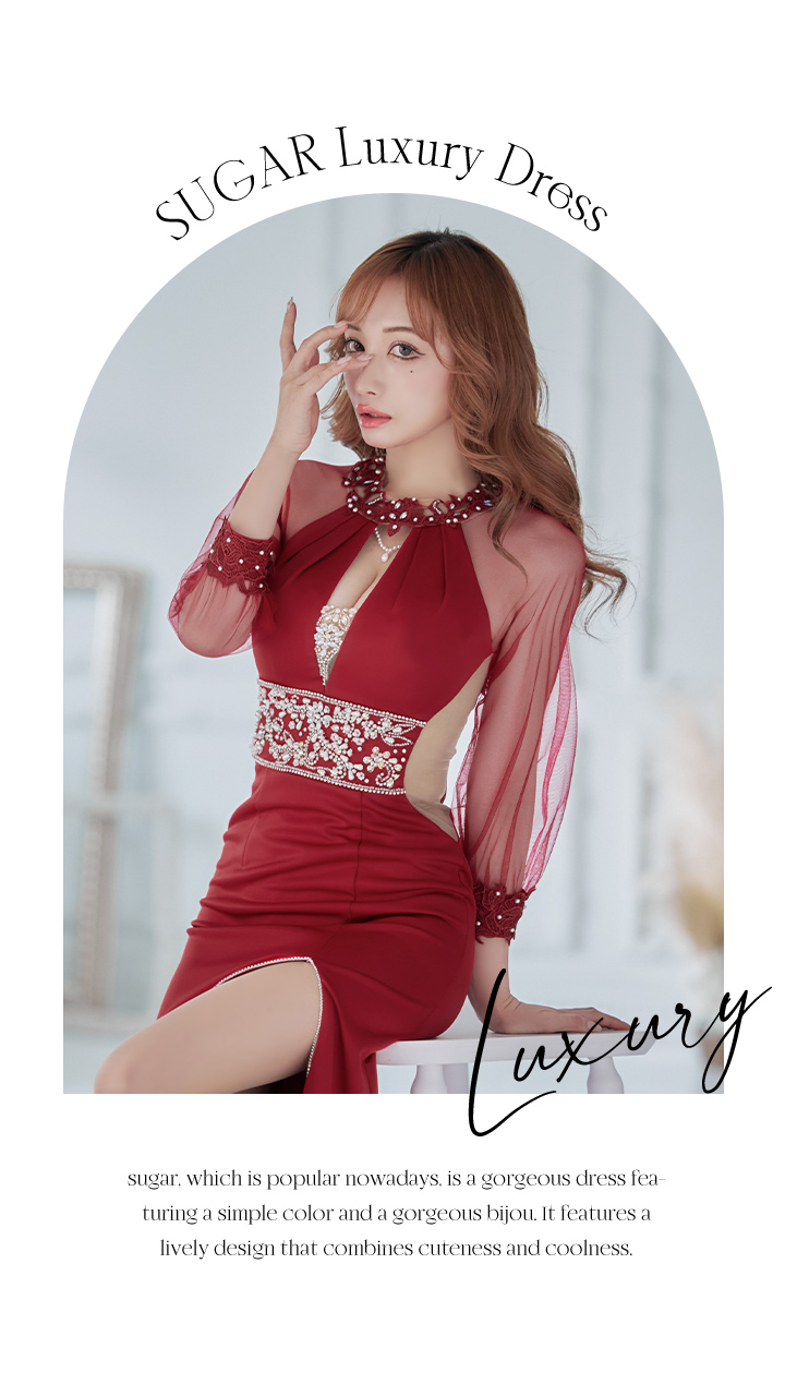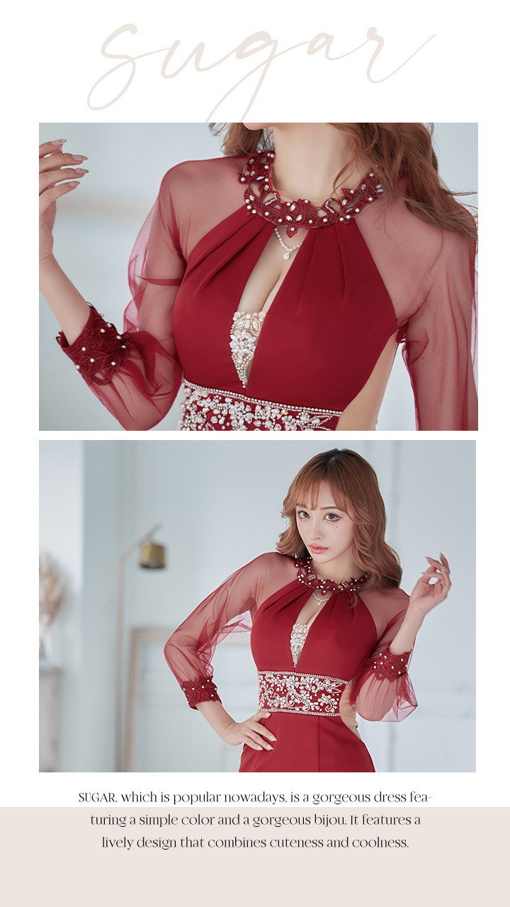 バストとウエストにはビジューを贅沢に施された煌びやかな仕上がりに。