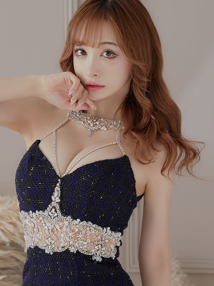 XSサイズあり【ANGEL R/エンジェルアール】ラメツイード/ デコルテウエストビジュー/ ホルター/ アメスリ/ タイト/ ミニドレス/ キャバドレス[OF2] [AR22361-NV-S2210]