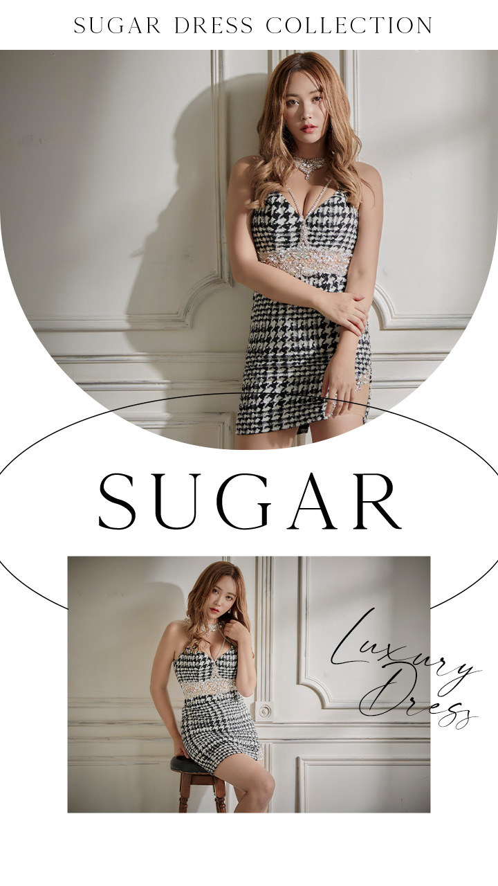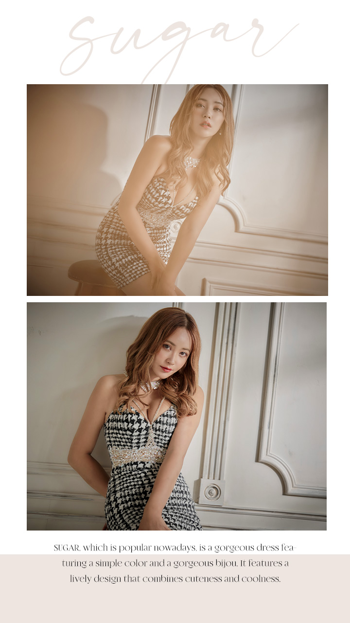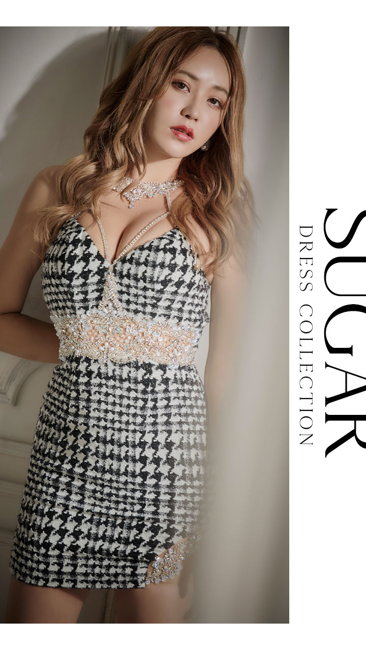 CUTEなツイード×煌めきビジューの乙女心擽るデザインがたっぷり詰まったタイトミニドレス。