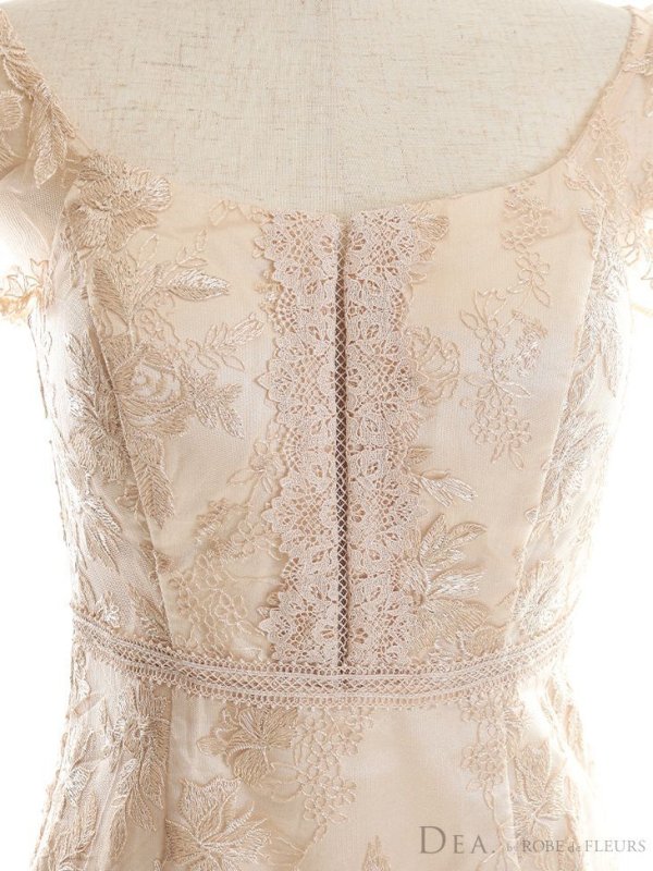 高級感溢れる刺繍レースで裾の透け感がフェミニンな上品ドレス♡