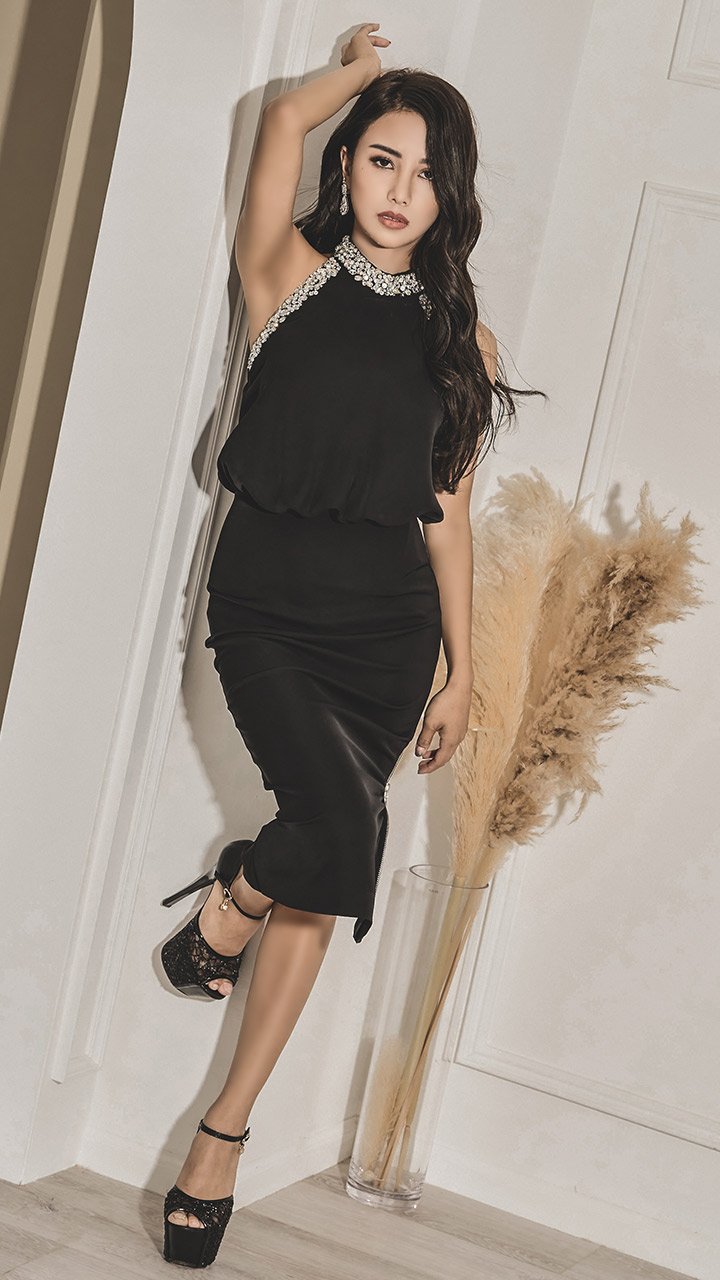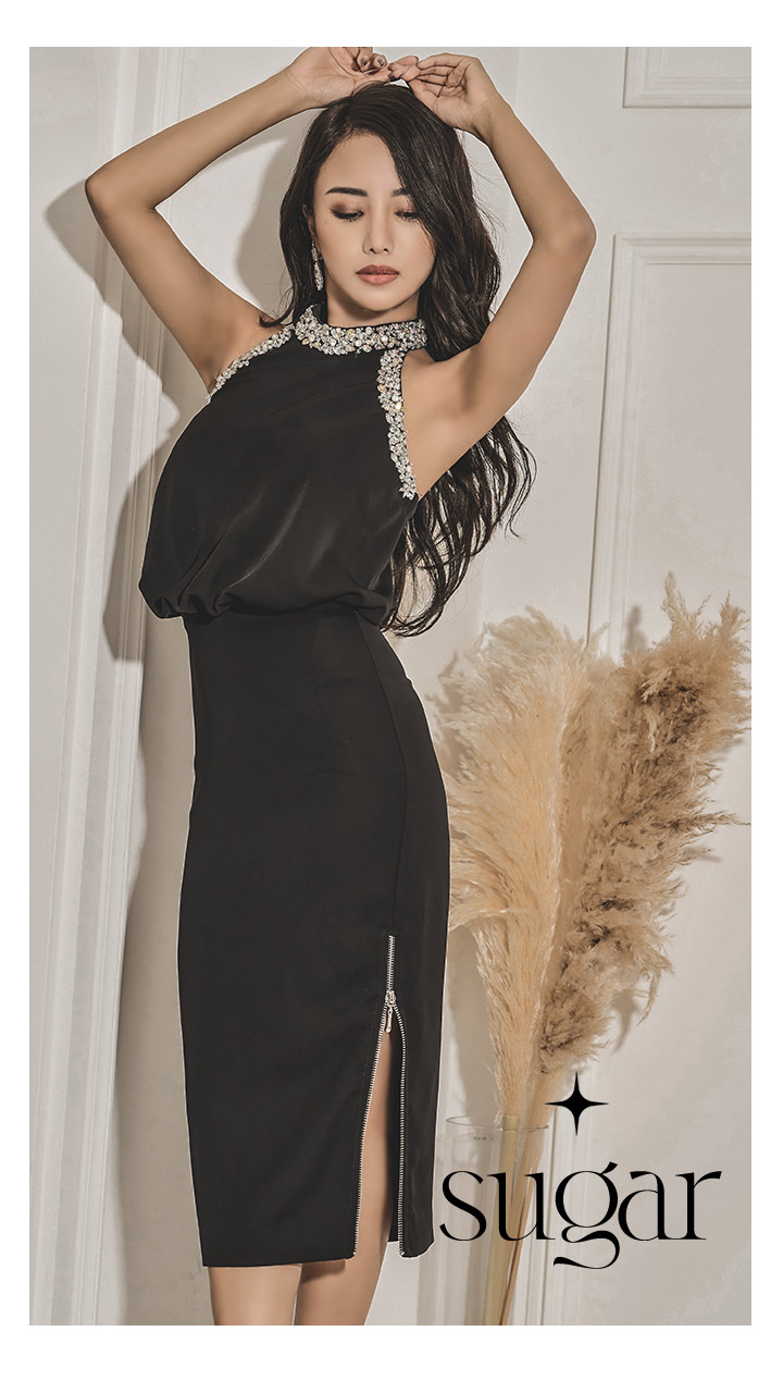 XSサイズあり【Veautt/ヴュート】アメスリ/ ホルターネック/ ネックショルダービジュー/ ファスナースリット/ ジップスリット/ タイト/ひざ丈/ミディアム/ ミニドレス/ キャバドレス[OF05] [VT04222-MIGR-S2210]