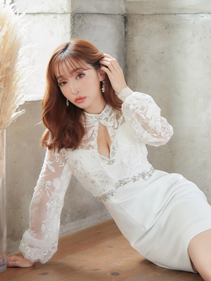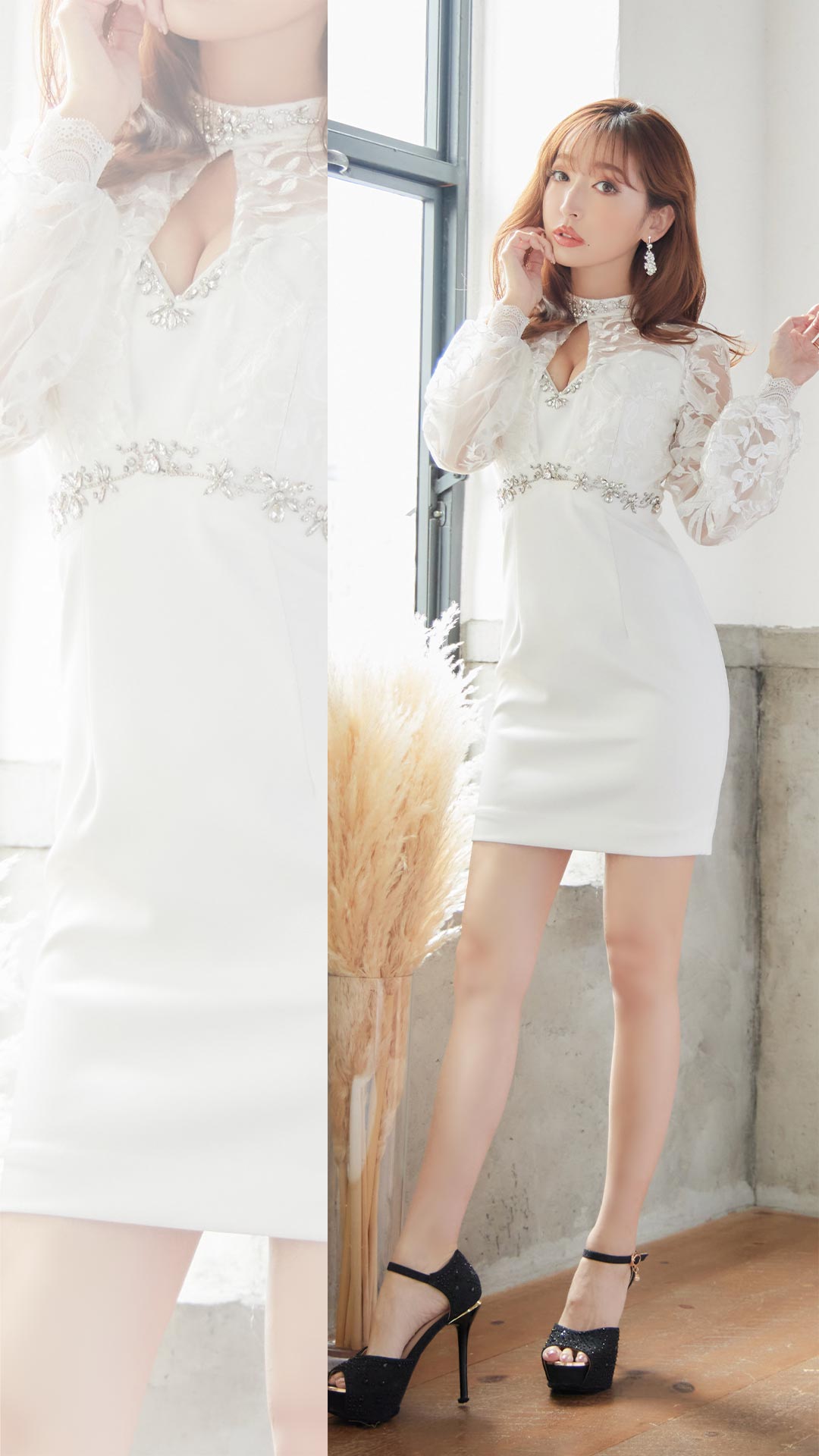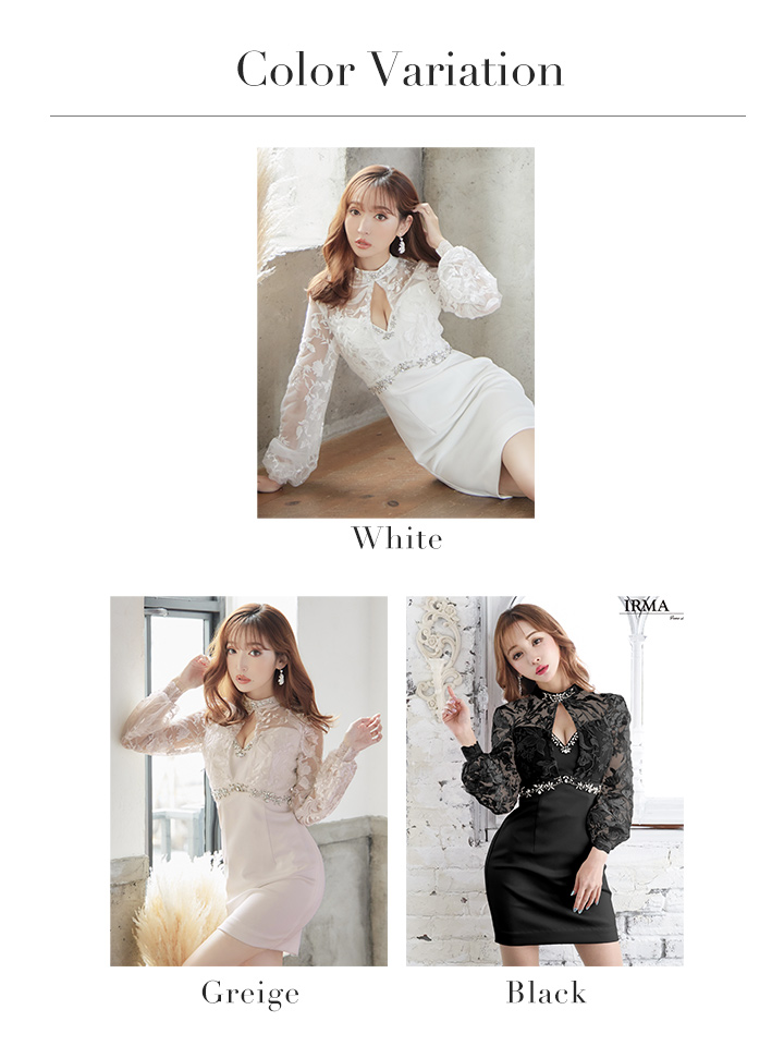 Lサイズあり☆【IRMA/イルマ】長袖/ 袖あり/ パフスリーブ/ レース/ 刺繍/ カットアウト/ ビジュー/ タイト/ ミニドレス/ キャバドレス【HC02】 [25791-IR-Graige-S221129]