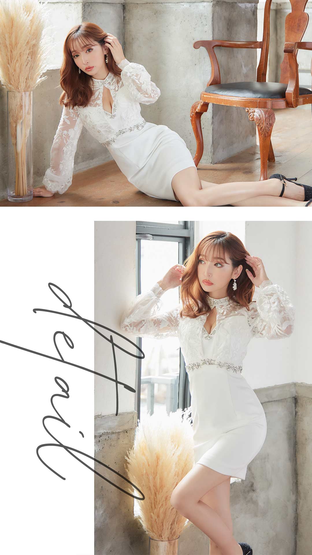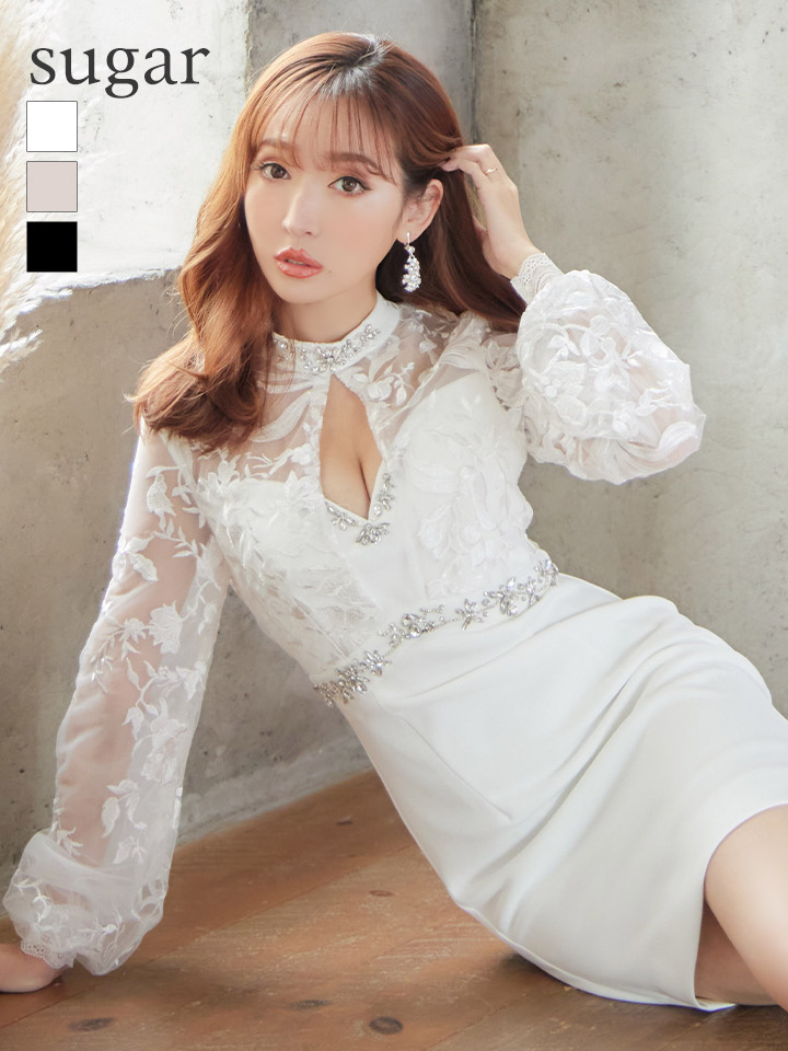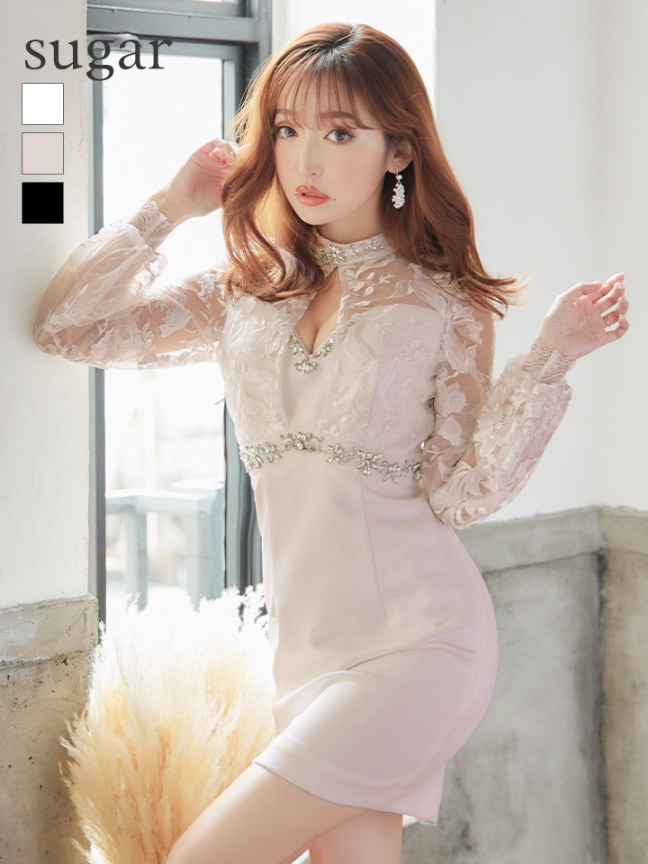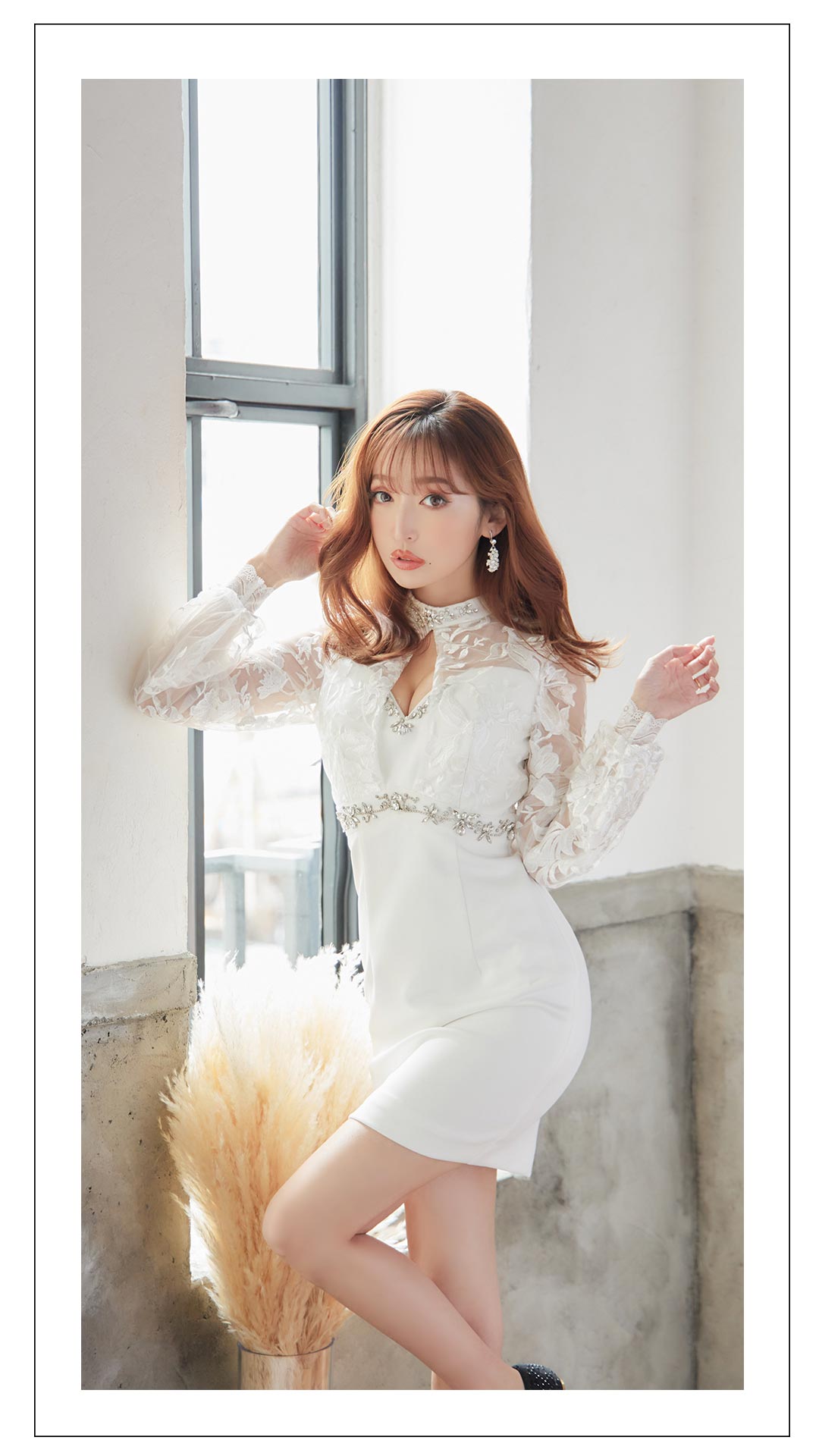Lサイズあり☆【IRMA/イルマ】長袖/ 袖あり/ パフスリーブ/ レース/ 刺繍/ カットアウト/ ビジュー/ タイト/ ミニドレス/ キャバドレス【HC02】 [25791-IR-Graige-S221129]