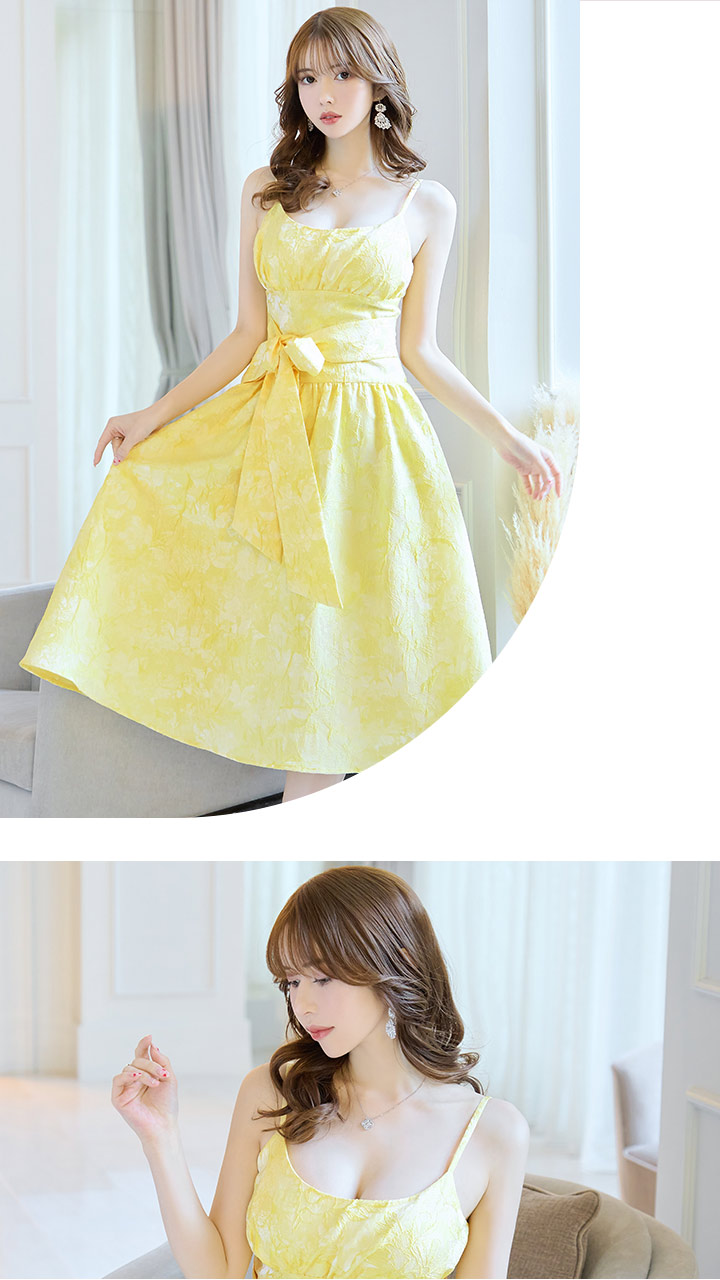 XS-Lサイズあり【ERUKEI エルケイ】総レース/ キャミソール/ ウエストリボン/ ギャザー/ フレア/ ミモレ丈/ ワンピース/ キャバドレス[OF2] [LKE22028-YE-S230114]