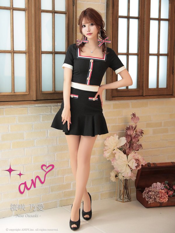 【an /アン】ツイード/ フロントボタン/ 半袖/ 袖あり/ セットアップ/ ツーピース/ フレア/ ミニドレス/ キャバドレス[OF05] [AOC3400-B-2302]