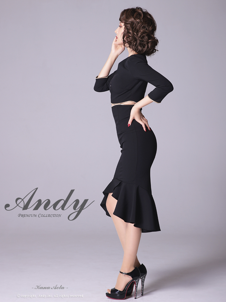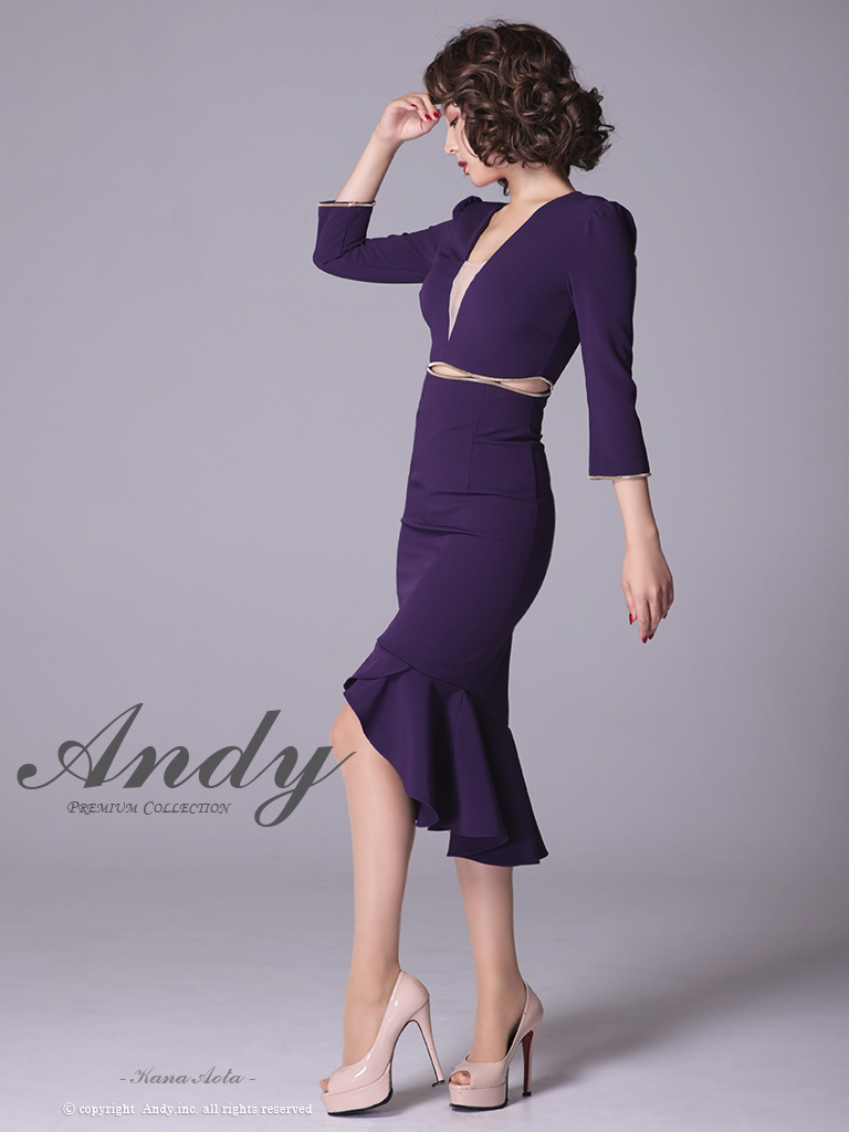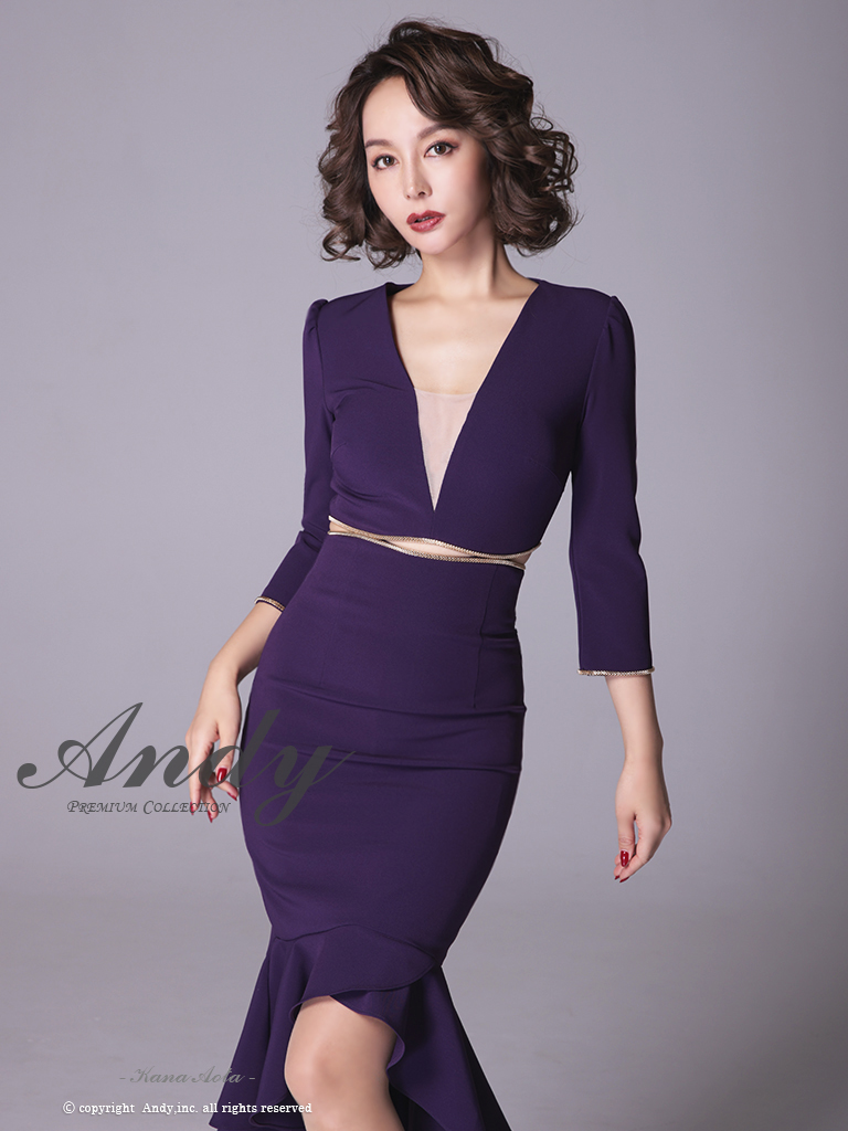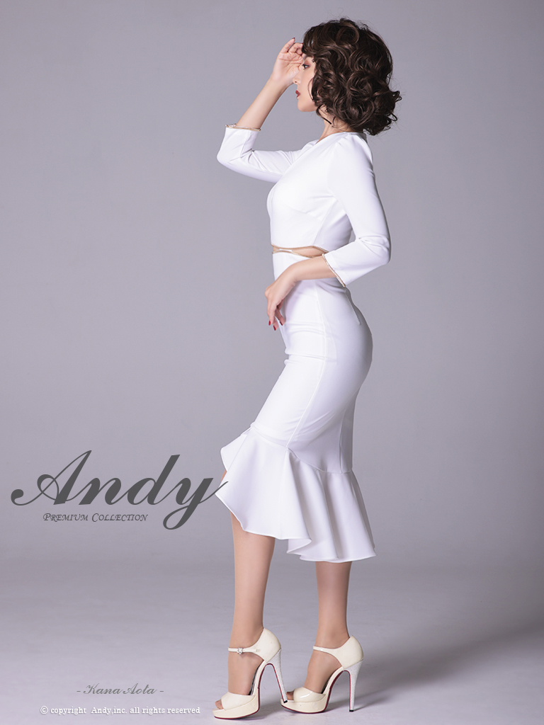 【ANDY/アンディ】マーメイド/ 七分袖/ 長袖/ 袖あり/ カットアウト/ ワンカラー/ テールカット/ フリル/ ミディアム/ キャバドレス[OF05] [OK2690-PL-2303]