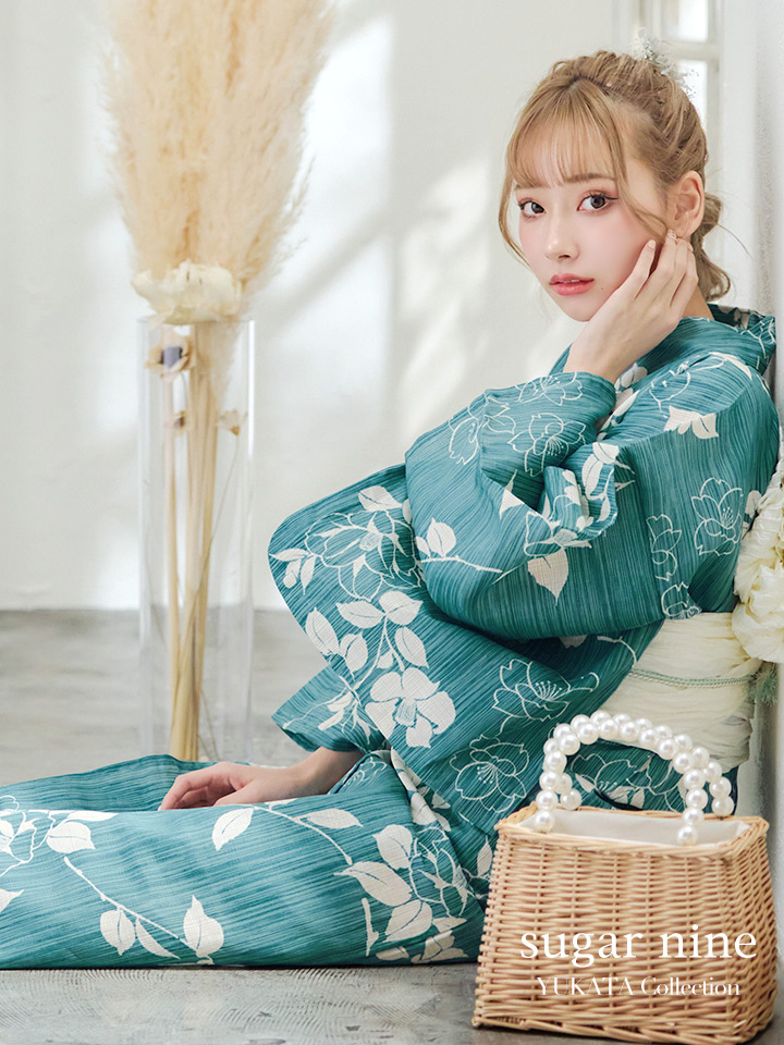 【即日発送】【浴衣】アクアブルー椿浴衣 【浴衣3点セット 浴衣/帯/下駄】[YMT] [Y-7116-wk-BL-F-23PY]