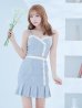 【an /アン】ギンガムチェック/ マーメイド/ ビスチェ/ ボタンデザイン/ プリーツ/ セットアップ/ ツーピース/ ミニドレス/ キャバドレス[OF05] [AOC3425-B-S230407]